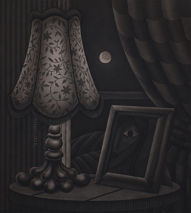 Lamp with Picture Frame, 22" x 20", acrylic on canvas, 2024. Shown at Future Fair 2024 with Hashimoto Contemporary NYC.